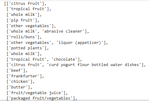 Format data ini bukan berupa tabel dengan baris-kolom terstruktur, melainkan berbentuk list transaksi. Oleh karena itu, proses data cleaning dan transformasi sangat penting agar dataset dapat diubah menjadi format yang siap diolah dengan Python, khususnya pandas dan mlxtend.