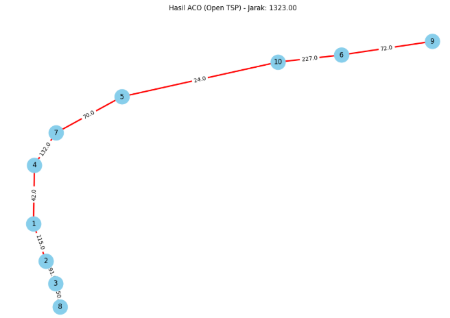 --- HASIL KODE MASTER ACO (Open TSP / Jalur Terpendek) ---