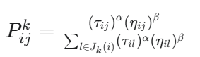 Probabilitas semut k untuk bergerak dari Vi ke Vj dihitung dengan rumus: